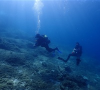 Προς το τέλος της διαδρομής, σε ρηχό πλάτωμα το ρεύμα γίνεται πιο ισχνό, ιδανικό σημείο για τη στάση ασφαλείας στα 5 μέτρα, όπου μετά στην επιφάνεια θα μας περιμένει το σκάφος περισυλλογής δυτών - pick-up point.