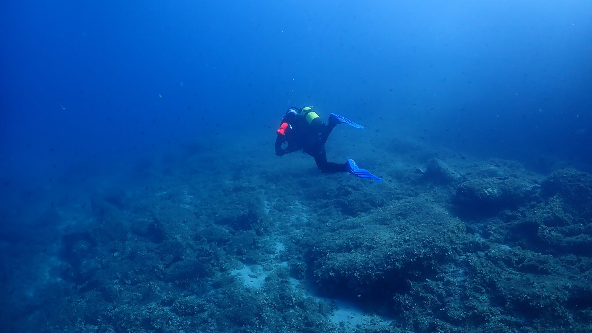 Προς το τέλος της διαδρομής, σε ρηχό πλάτωμα το ρεύμα γίνεται πιο ισχνό, ιδανικό σημείο για την στάση ασφαλείας στα 5 μέτρα, όπου θα μας περιμένει το σκάφος περισυλλογής δυτών (pick-up point).