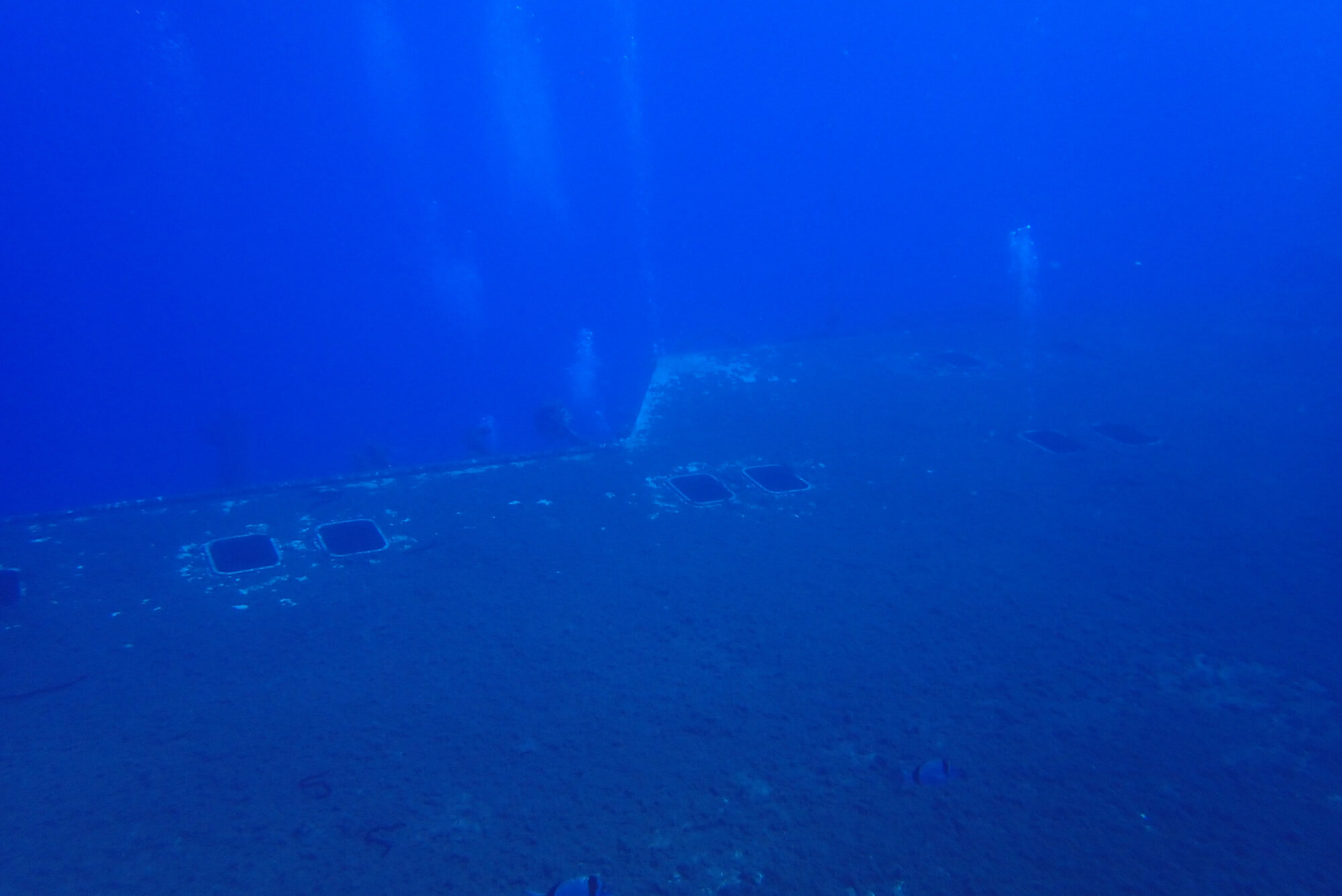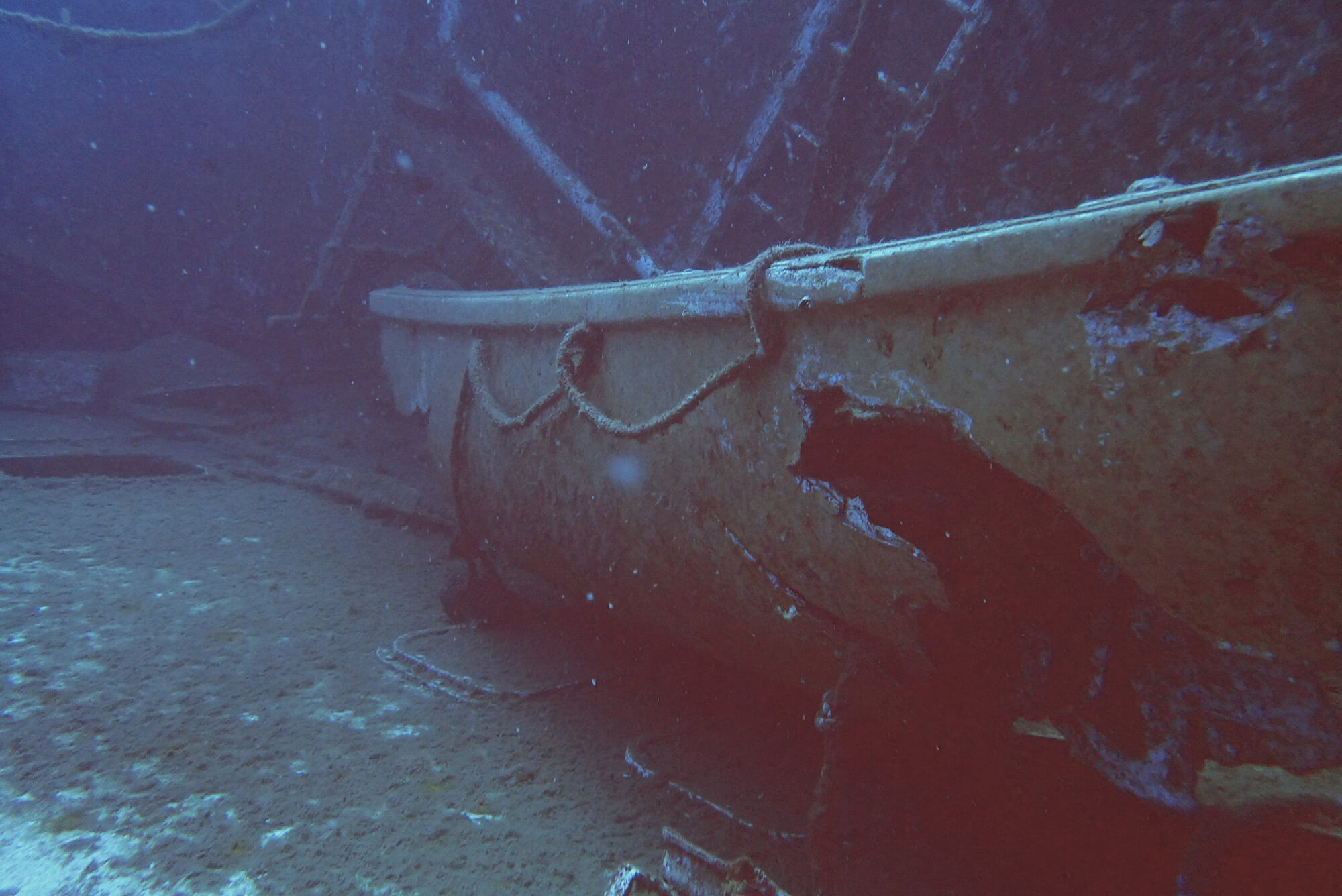 We start with a dive from the boat, descending with the help of a rope to a depth of 18 meters. Subsequently, we head north with the wreck on our left and swim towards the ship’s chimney at a depth of 28 meters. Continuing along the ship’s path, we swim over several trucks that remain in the wreckage. Upon reaching the stern of the wreck, we swim between the cargo doors and turn left towards the rear of the ship. Making another left turn, we find the ship’s propellers at 26 meters. Next, we ascend to 20 meters and head south towards the central rope. Ascending slowly, we ensure the completion of our three-minute safety stop at 5 meters.